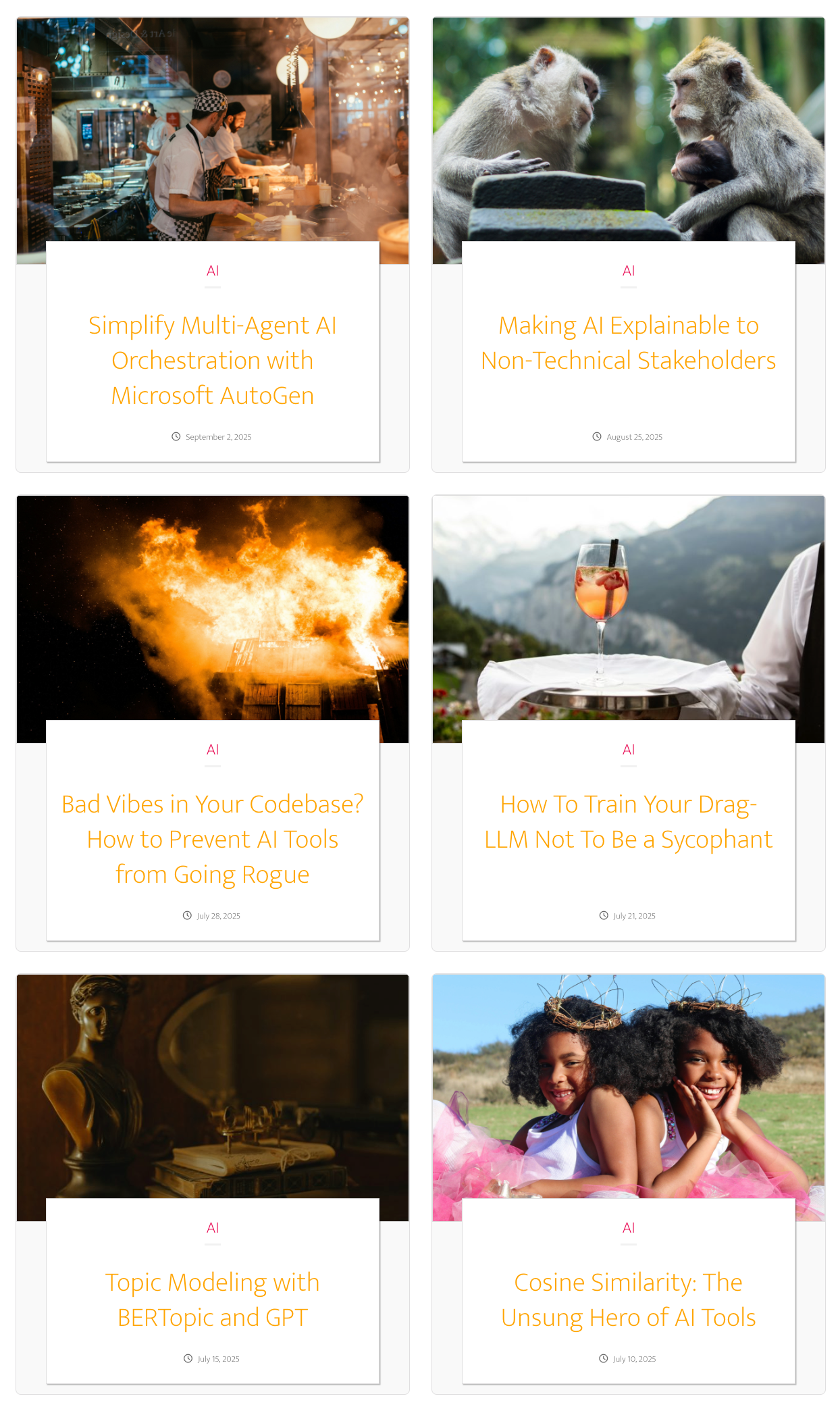 I am passionate about making technical, data-drenched topics around AI, engineering, data science, and web analytics accessible to those wanting to learn more about these topics. Although I have a master’s degree in data science, I’m less interested in academic discussions and focus my posts on the business impact of data and AI, with a proclivity to share my code and/or example files.