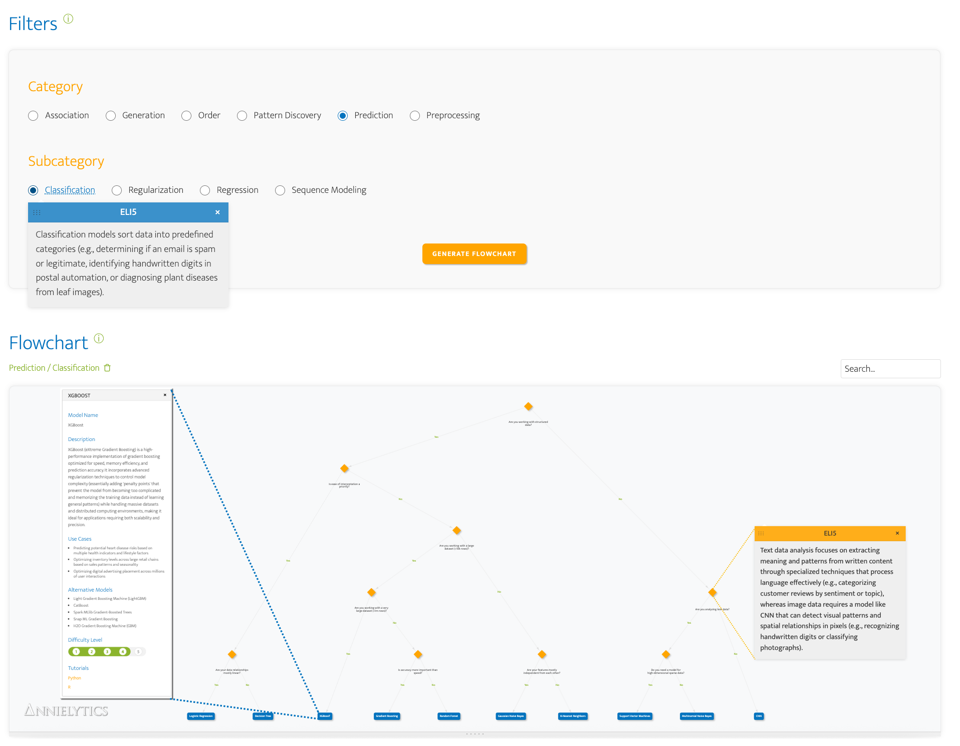 Deciding on a machine learning model for a project can be onerous task. To ease with that process, I created an interactive flowchart to walk you through the process. Each step has aids to explain the process, to help stakeholders who don’t live and breathe data as well as newbies.