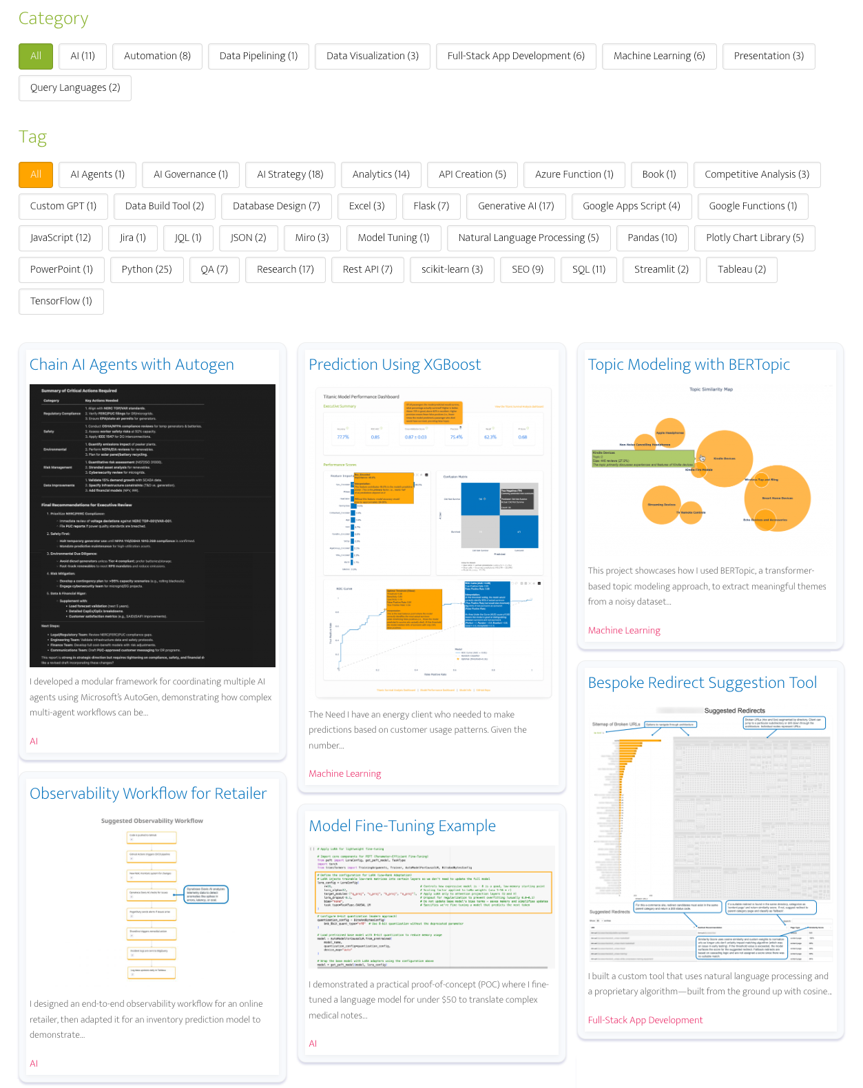 Want to see samples of my work? I created an interactive portfolio with project descriptions and supporting multimedia. My focus areas are AI engineering, AI strategy, data science, and data visualization. My tagline is “I make data sexy” for a reason. 📈👠
