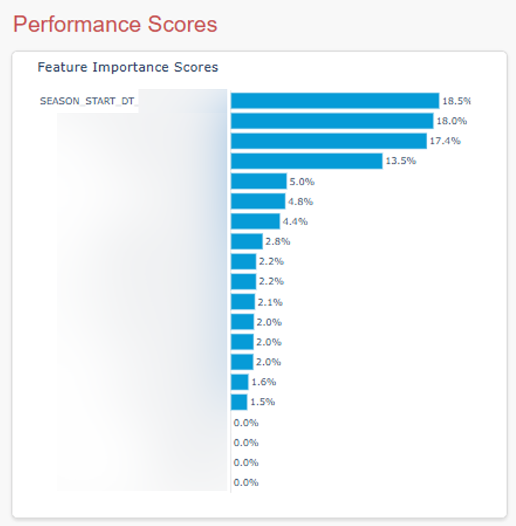 - See the bar chart above to see how I visualized these feature importance scores. What it tells me is, of the 21 features I trained the model with, 16 of them actually impacted the outcomes.