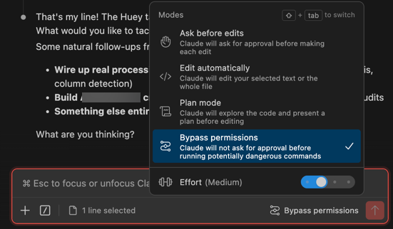 ‘Bypass permissions’ mode: the far-left agentic coding lane