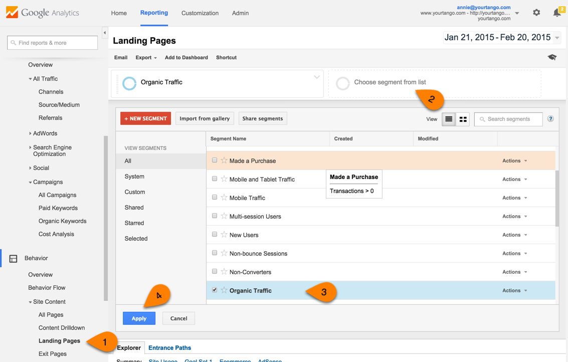Google Analytics organic traffic report