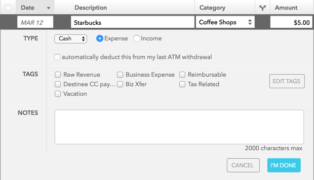 recording cash transactions in Mint