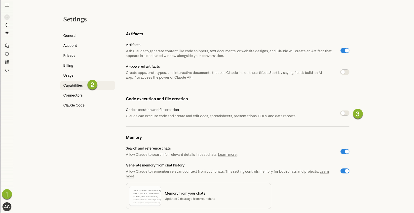 From the Claude UI navigate to Settings (select your profile image, which for most is going to be your initials in the bottom-left corner) > Capabilities > toggle Code execution and file creation off.